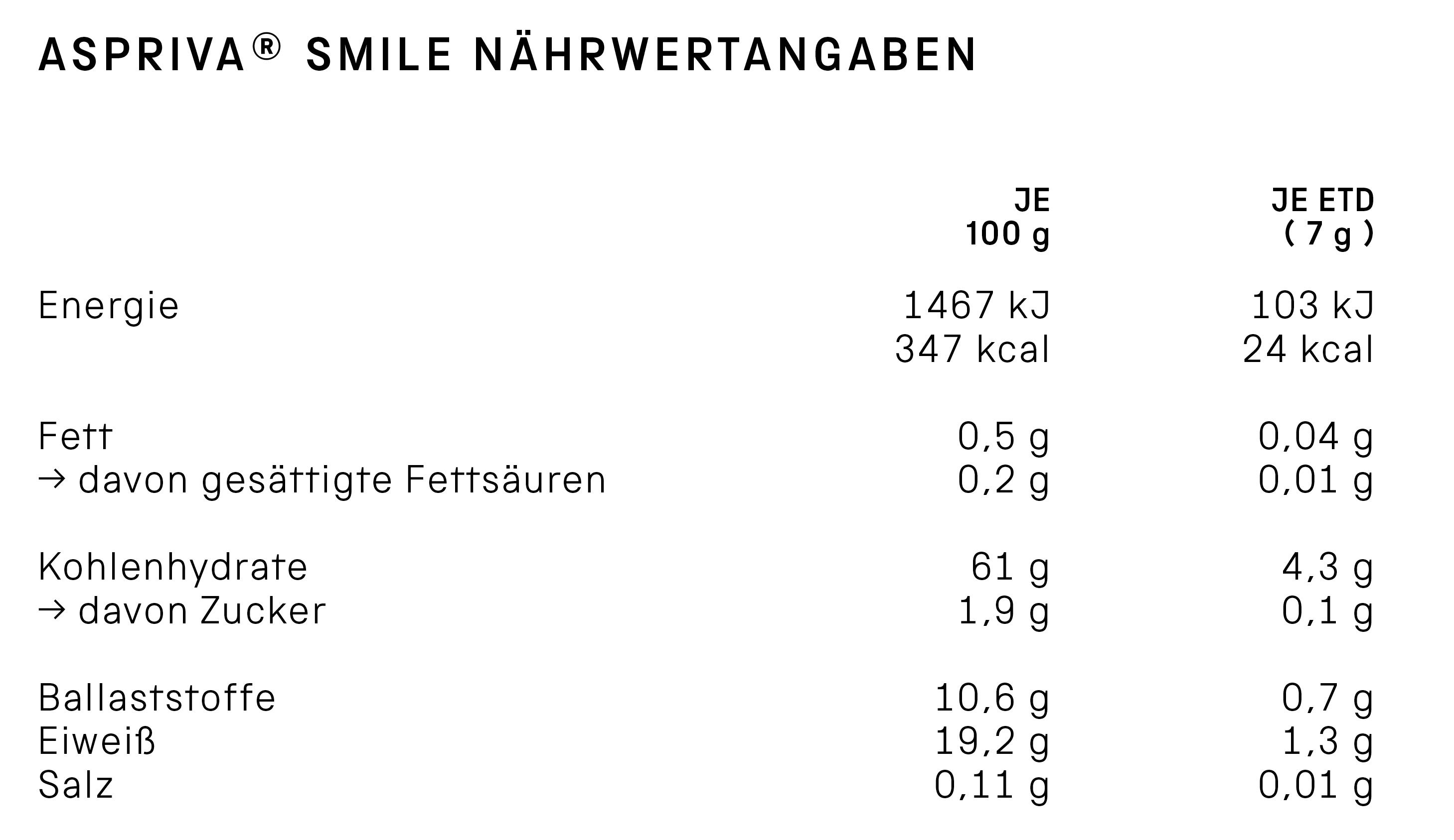 WIE ALLE ANDEREN PRODUKTE VON ASPRIVA IST AUCH ASPRIVA® SMILE NICHT FÜR KINDER, JUGENDLICHE, SCHWANGERE UND STILLENDE GEEIGNET.